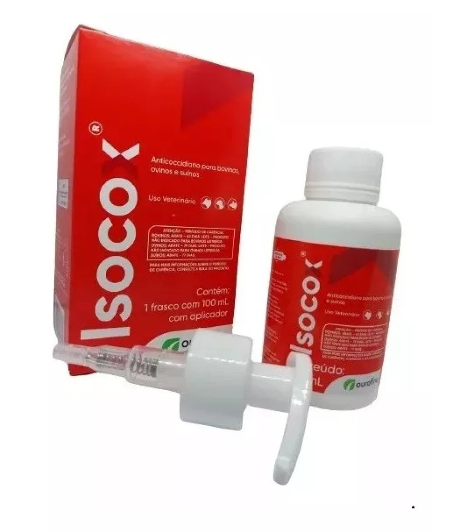 Bovinos e Ovinos: A coccidiose bovina e ovina afeta principalmente animais jovens, resultando em distúrbios gastrintestinais e quadros variados de diarreia. Isocox® é indicado para profilaxia, metafilaxia e tratamento da coccidiose provocada por Eimeria bovis, Eimeria zuernii em bovinos, e Eimeria crandallis, Eimeria ovinoidalis em ovinos. A administração em bovinos deve seguir a dosagem de 3 mL para cada 10 kg de peso vivo (equivalente a 15 mg/kg de Toltrazuril) pela via oral em dose única. Em ovinos, a dosagem recomendada é de 1 mL para cada 2,5 kg de peso vivo (equivalente a 20 mg/kg de Toltrazuril), também em dose única.